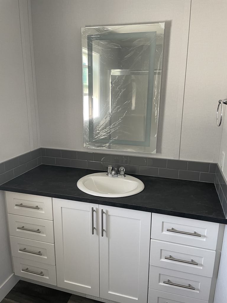 This brand new 3-bedroom, 2-bathroom manufactured home is available in Broadview Villas MHP, Salmon Arm. The home has already been delivered to the lot and offers 1,008 sq. ft. of living space. Included are all new appliances, first year homeowners’ insurance, a one-year warranty package, and a 2-to-10-year structural warranty. An 8′ x 10′ covered front porch will also be built on site during setup.